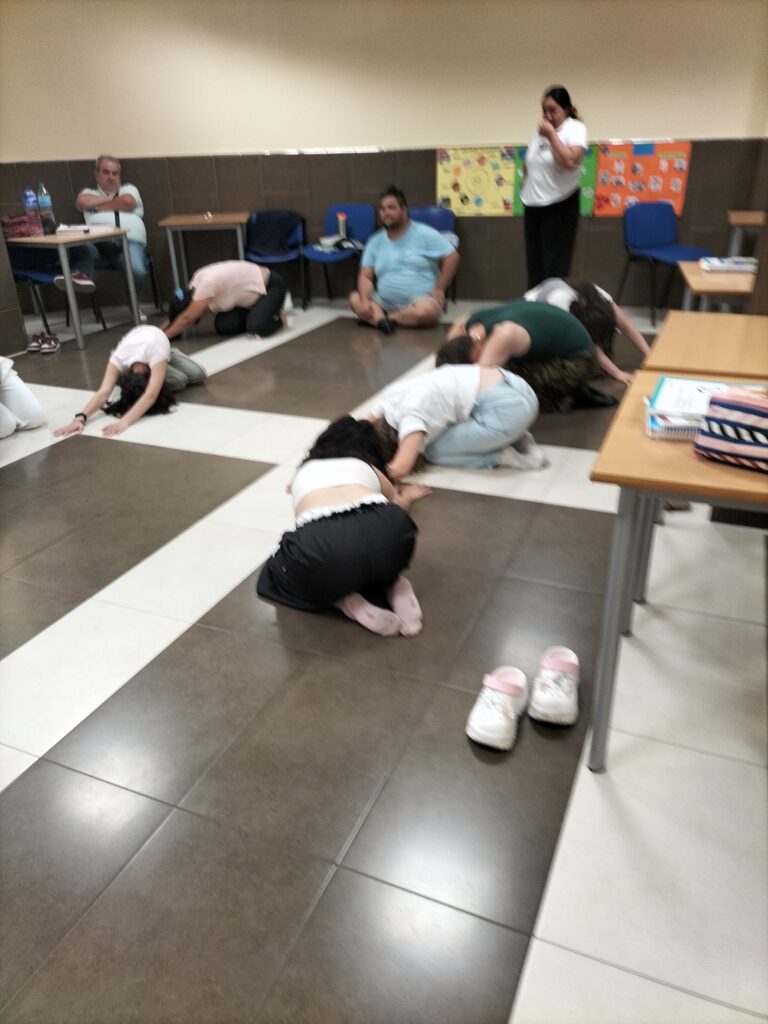 Durante el taller hemos realizado actividades relacionadas con el movimiento corporal y la expresión, reconocimiento y validación emocional, conocido técnicas de relajación personal para aplicar en el trabajo a las personas que apoyamos.